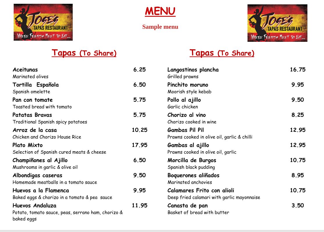Jose's Tapas Restaurant is a family owned business in the heart of Wakefield. We serve the finest authentic Spanish tapas as well as paella and other main meals all prepared in house from fresh ingredients and cooked lovingly by Jose and his team.